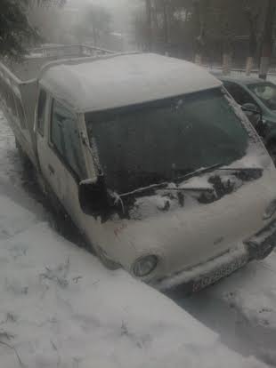 Ош шаарында «Портер» үлгүсүндөгү унаа кардан тайгаланып, жол четиндеги арыкка түшүп кетти