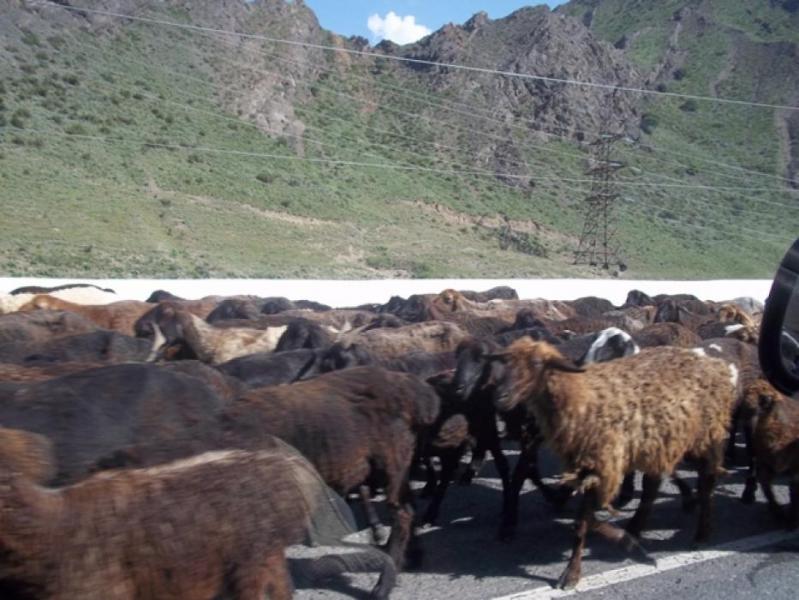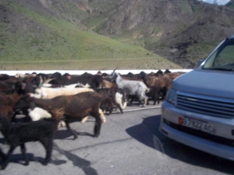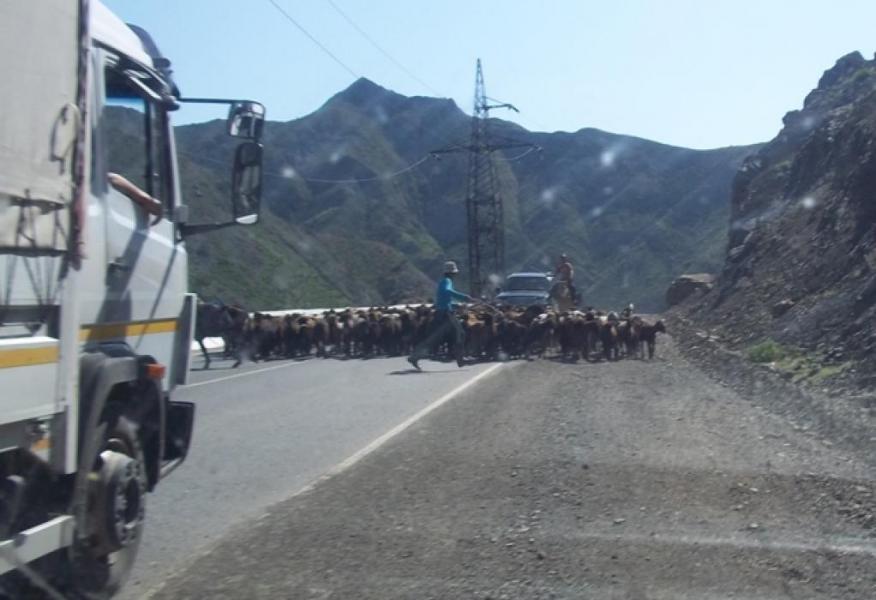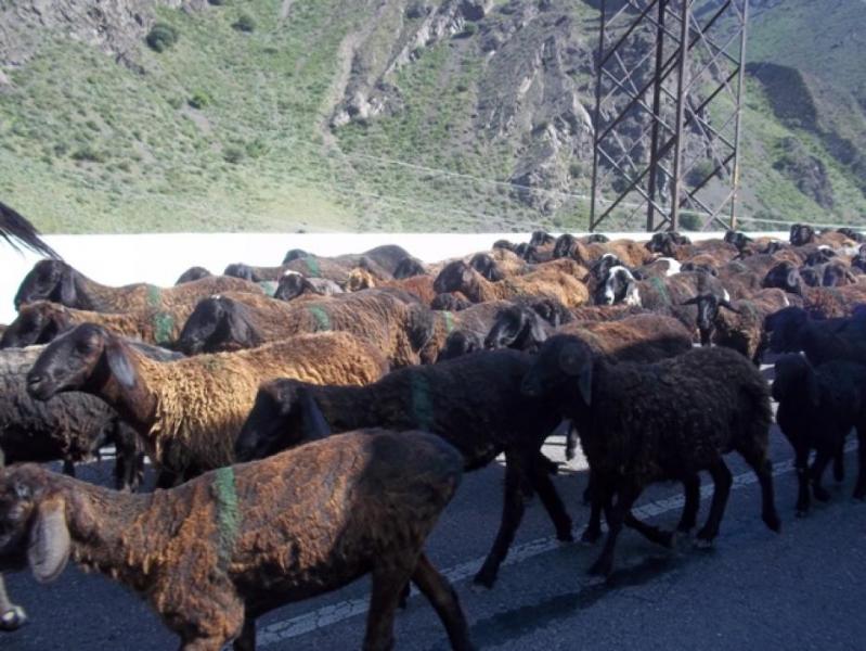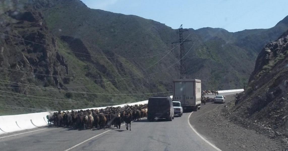 Токтогулдагы Бишкек—Ош жолунан өткөн жүздөгөн малдар унаалардын өтүүcүнө бир катар ыңгайсыздыктарды жаратууда, - айдоочулар (фото)
