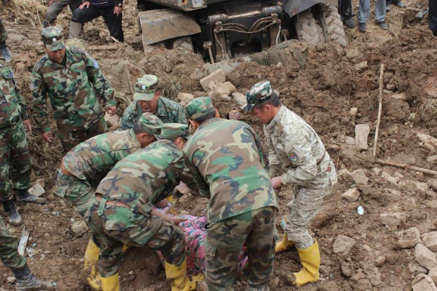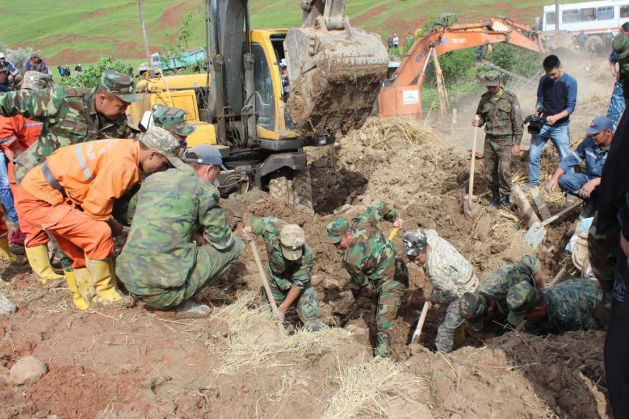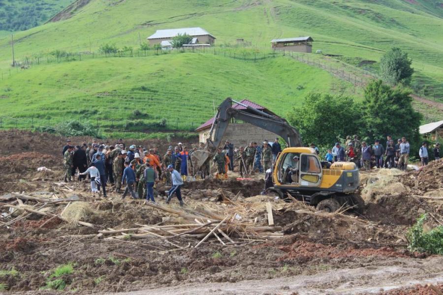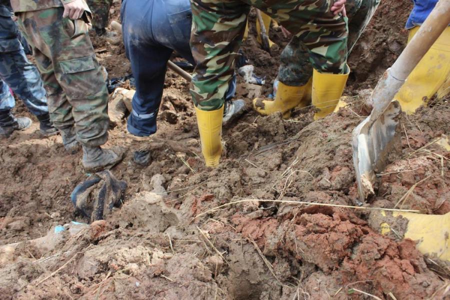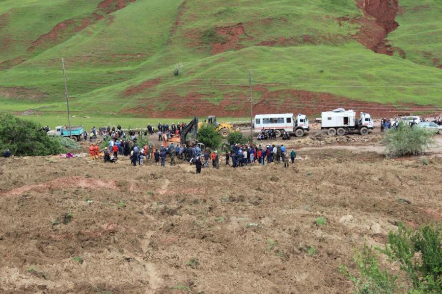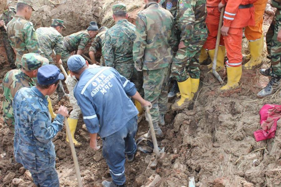 Сузак районундагы жер көчкү басып калган адамдарды чыгаруу иш-чараларынан фоторепортаж