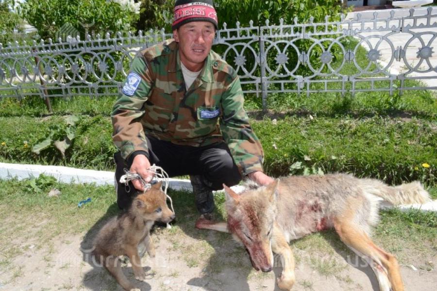 Фото - Жаратылыш ресурстарын сарамжалдуу пайдалануу департаментинин аңчысы Ак-Талаадан карышкырды атып өлтүрүп, бөлтүрүгүн тирүүлөй кармады