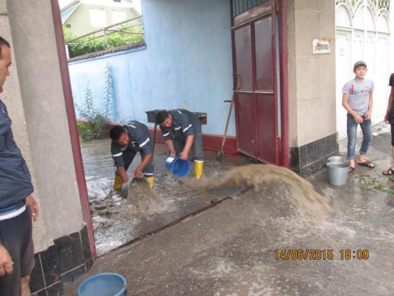 Куткаруучулар Кызыл-Кыядагы сел суулары каптаган үйлөрдү тазалады (фото)