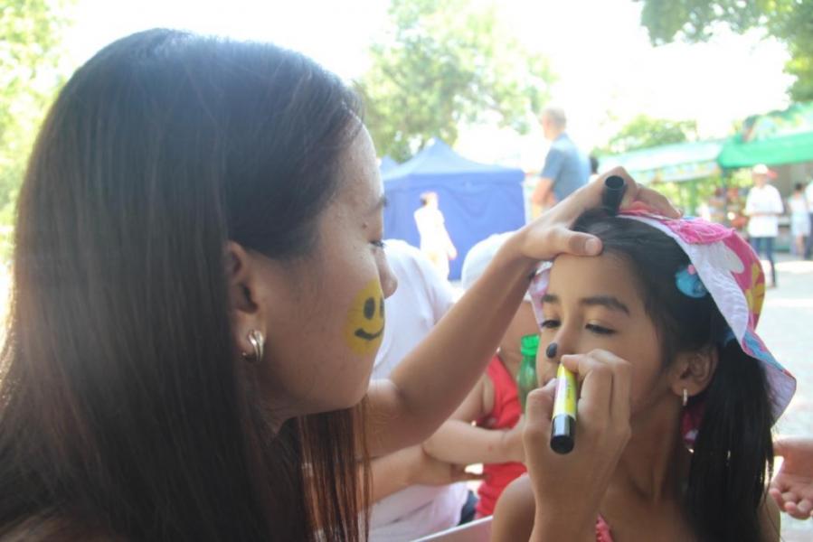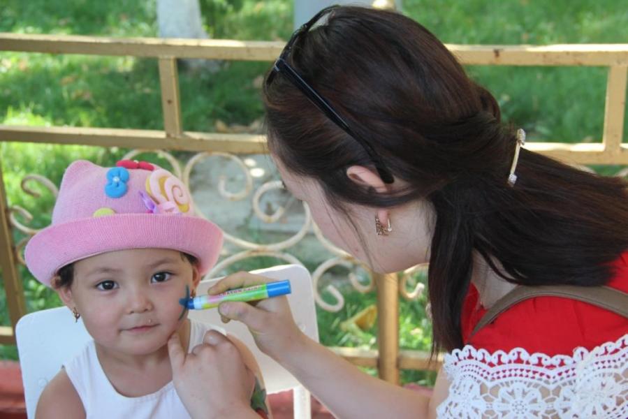 Ош шаарындагы фестивалдын жаңы модасы — балдардын бетине тартылган сүрөттөр