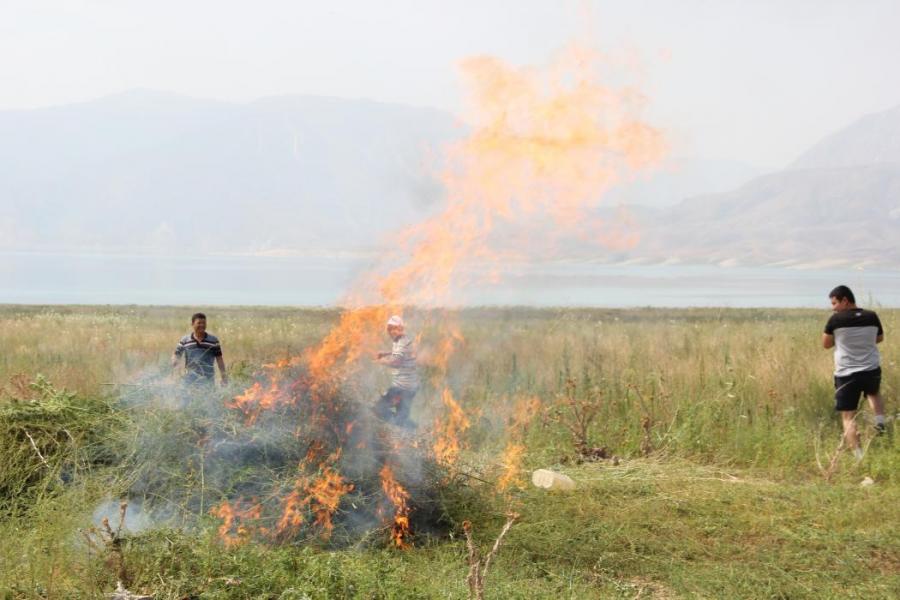 Токтогулдун 483 гектарын ээлеген жапайы кара куурайлар жок кылынууда (фото)
