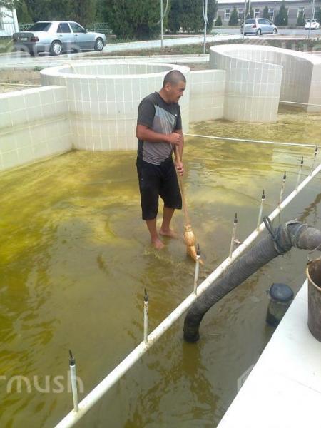 Талас шаарында сапатсыз салынган оргумадагы кир суу сордуруп алуу жолу менен тазаланып жатат (фото)