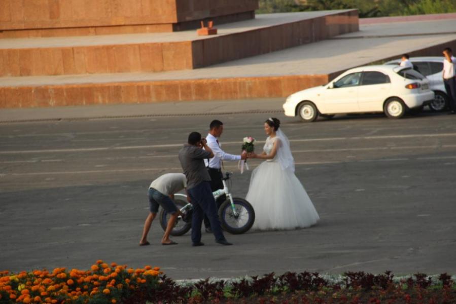 Көптөгөн жаштардын үйлөнүү тоюна күбө болгон Ош шаарындагы борбордук аянт (фото)