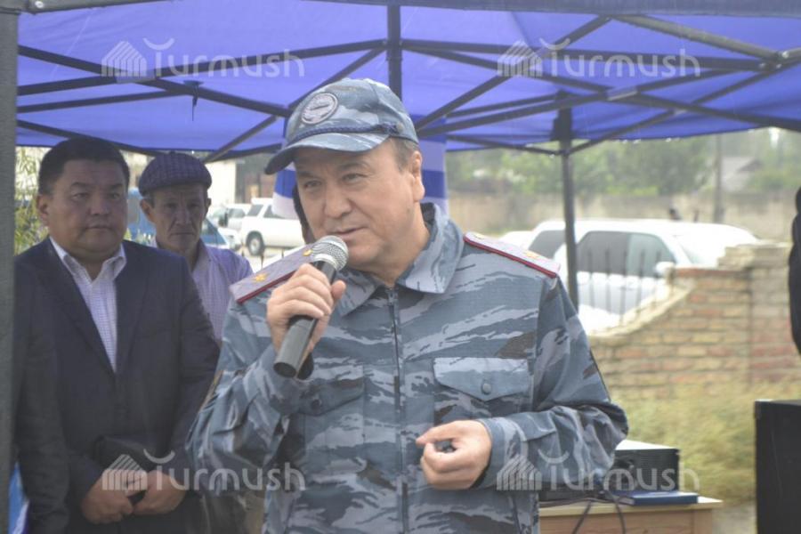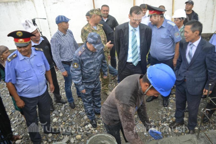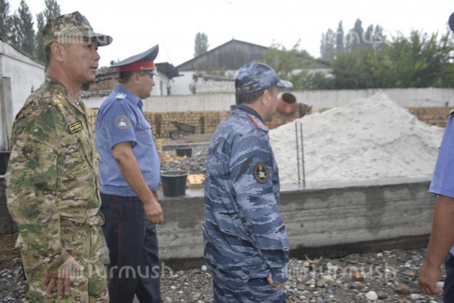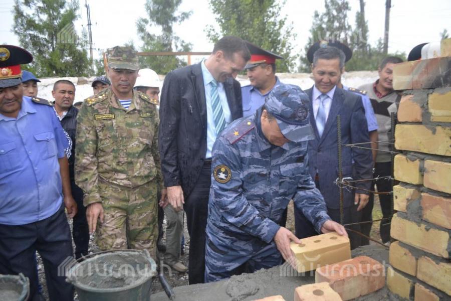 Лейлек районундагы милициянын аймактык бөлүмчөсүндөгү имараттын курулушуна министр М.Турганбаев кыш койду (фото)