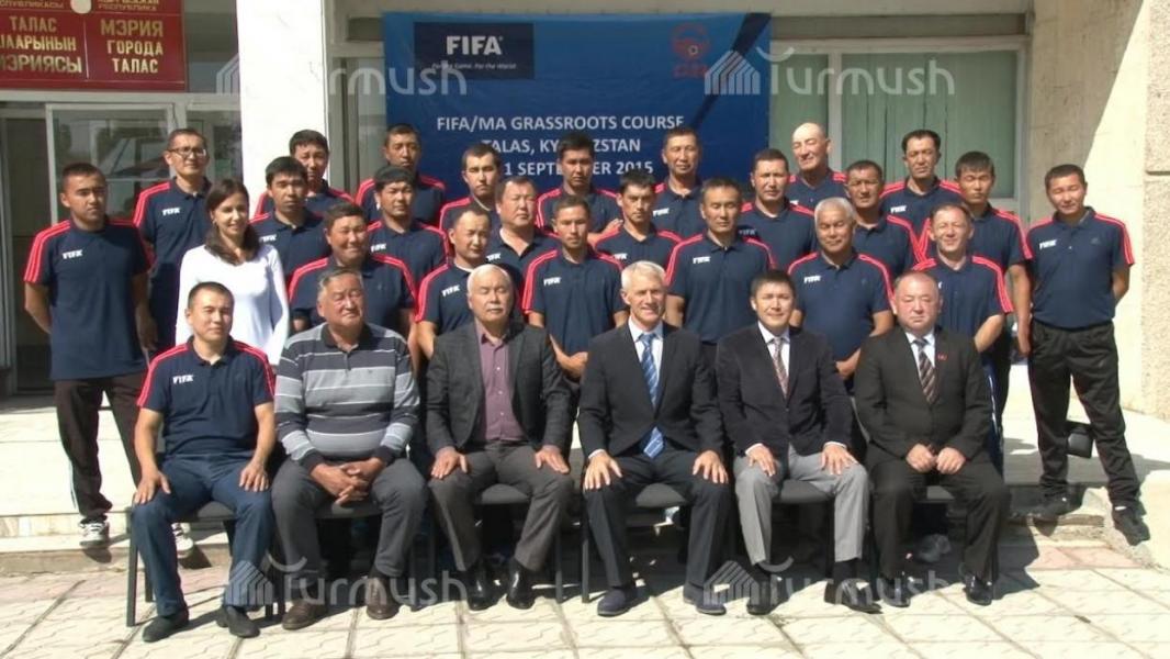 Талас шаарында футбол боюнча машыктыруучуларга семинар өткөрүлүүдө (фото)