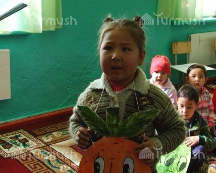 Жети-Өгүз районунун Тамга айылында бөбөктөр түшүм майрамын өткөрүү менен өсүмдүктөрдү айырмалоону үйрөнүштү (фото)