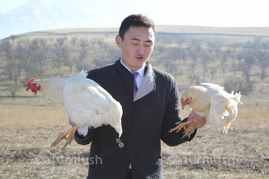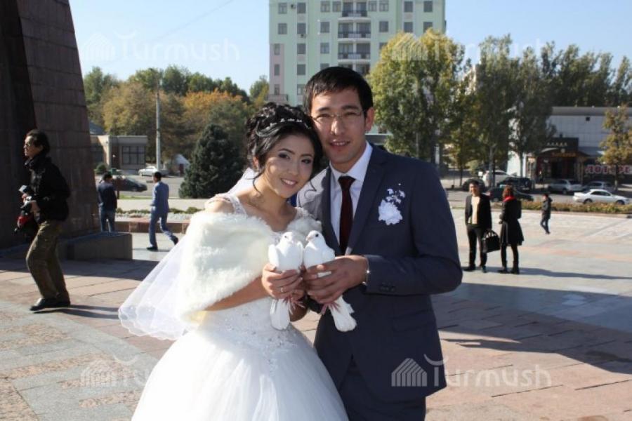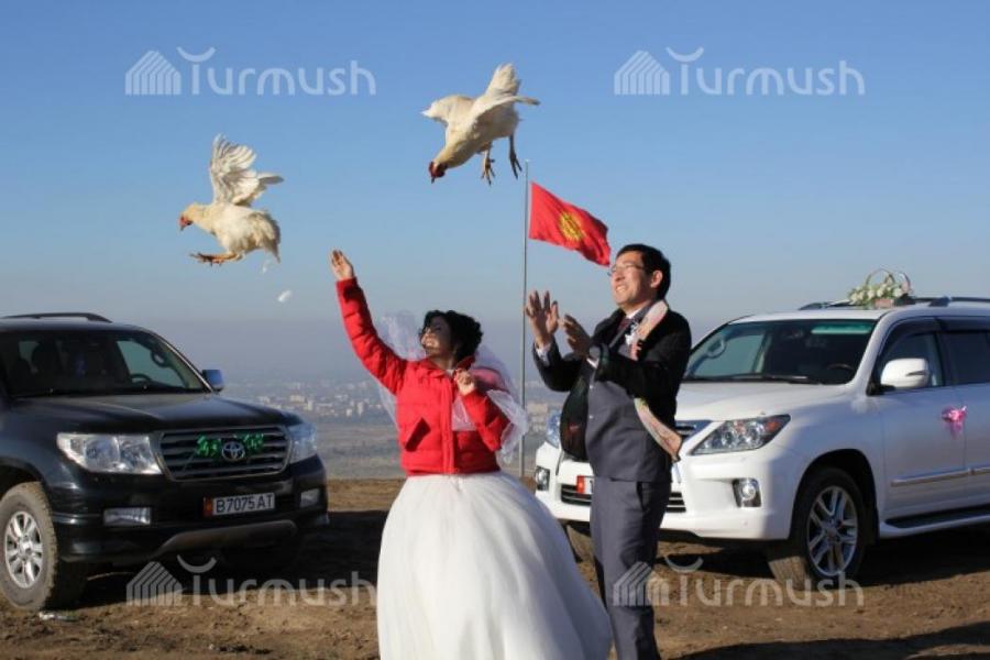 Нарындык жаш жубайлардын үйлөнүү тою тоок учуруу менен өзгөчөлөндү (фото)