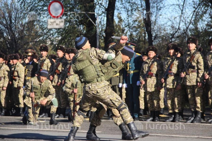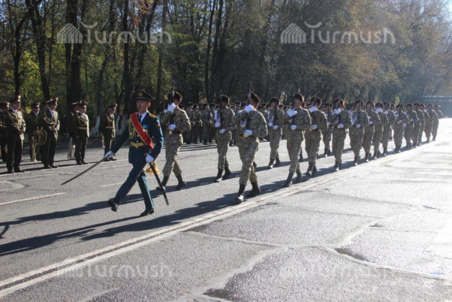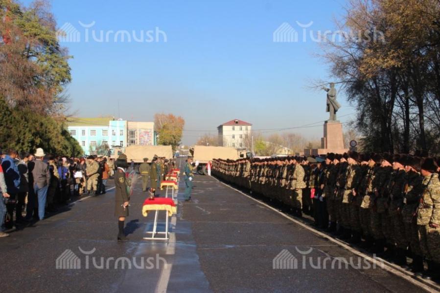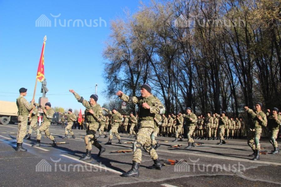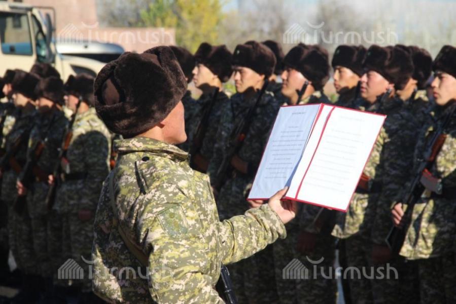 Ош шаарындагы аскер бөлүккө кабыл алынгандардын аскердик ант берүү аземинен фоторепортаж
