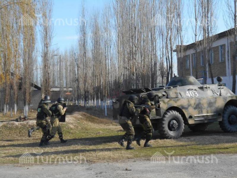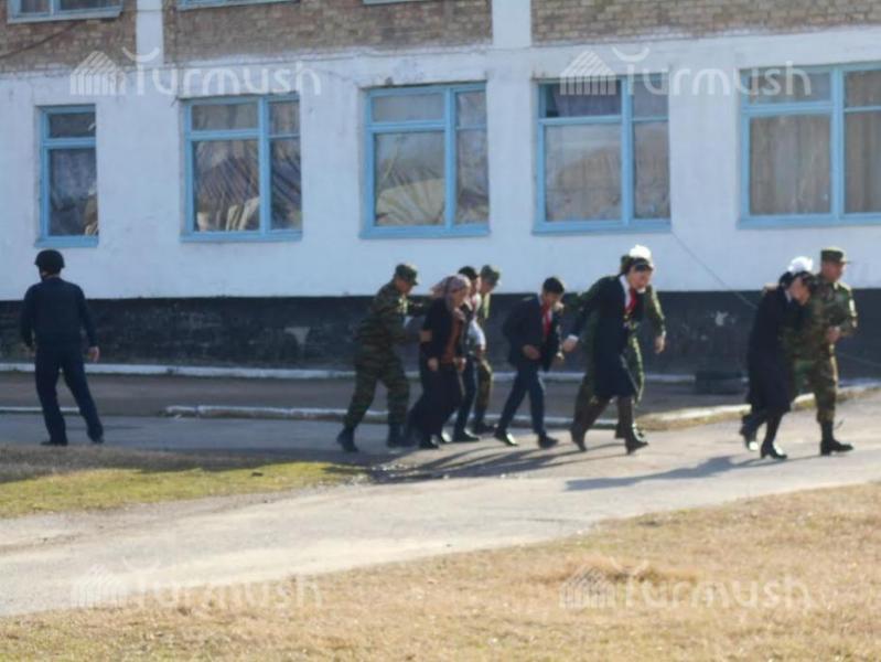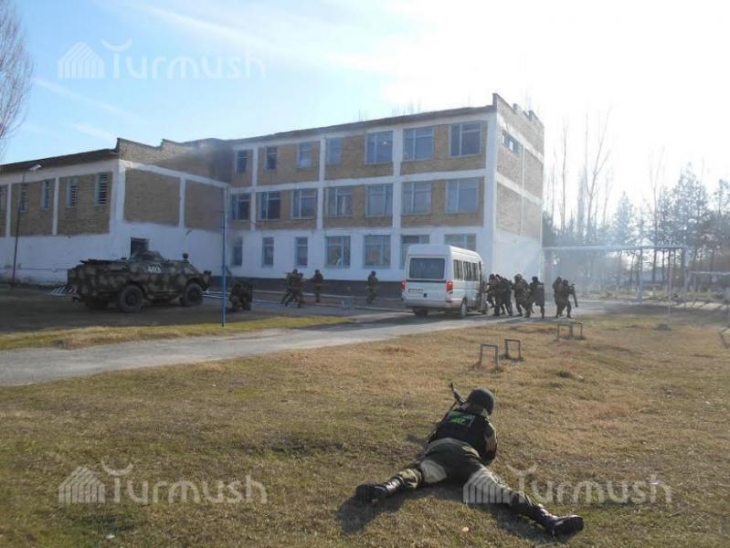 Фоторепортаж - Сузактагы №2 орто мектебинде террористтик кол салууга каршы аскердик ыкчам иш-чара өткөрүлдү