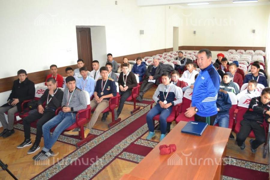 Футбол боюнча өткөн чемпионатта жеңишке жеткен таластык спортчуларды жергиликтүү бийлик куттуктады (фото)