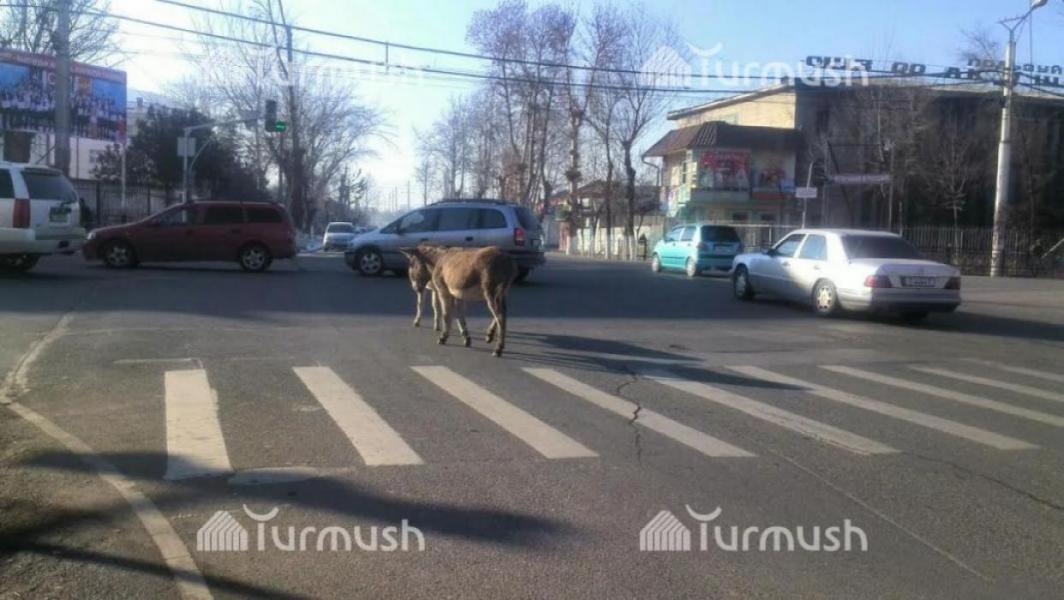 Фото, видео - Ош шаарынын борбордук көчөсүнө эшектер сейилдеп чыкты