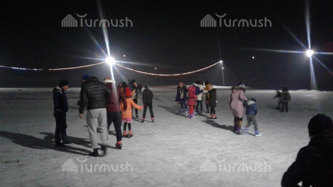 Кара-Балта шаарынын айрым жашоочулары менен меймандары Жаңы жылды муз аянтынын үстүндө тосту (фото)