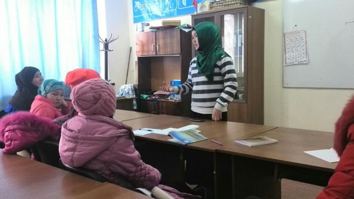 Ислам университетинин студенти кышкы эс алуу учурунда кара-көлдүктөргө Куран окууну үйрөтүүдө