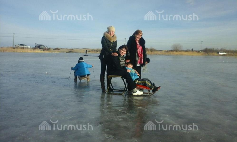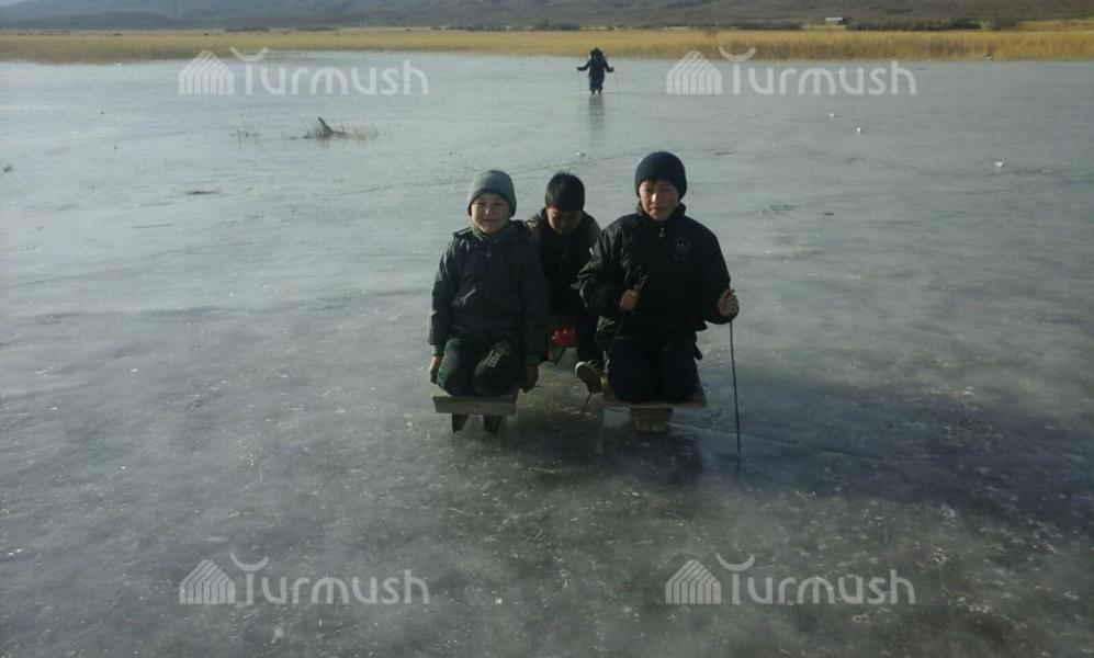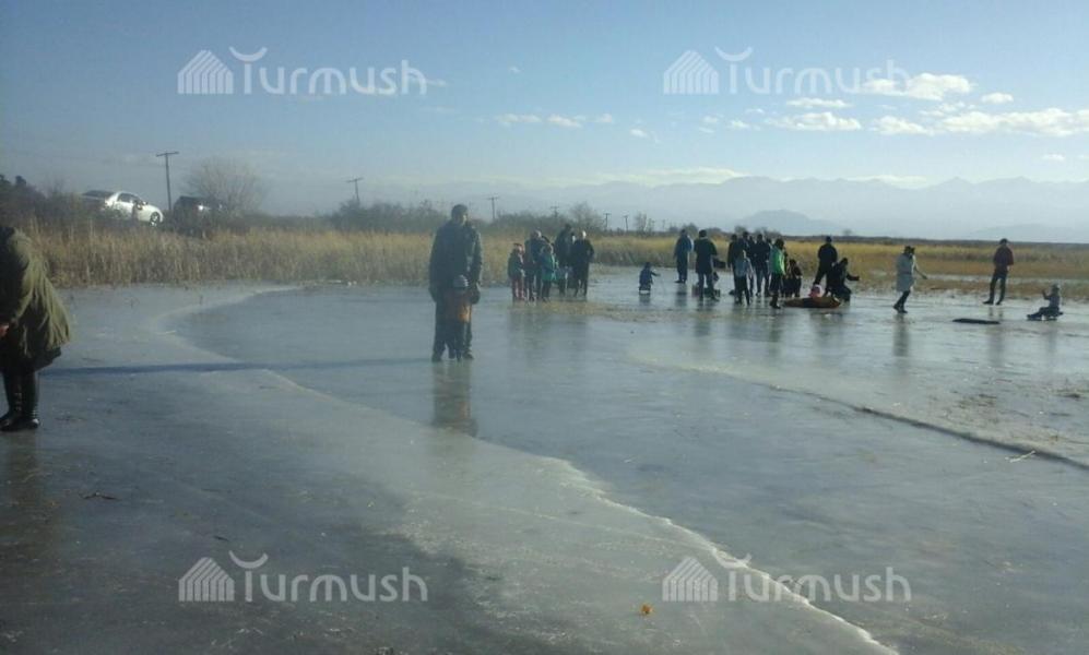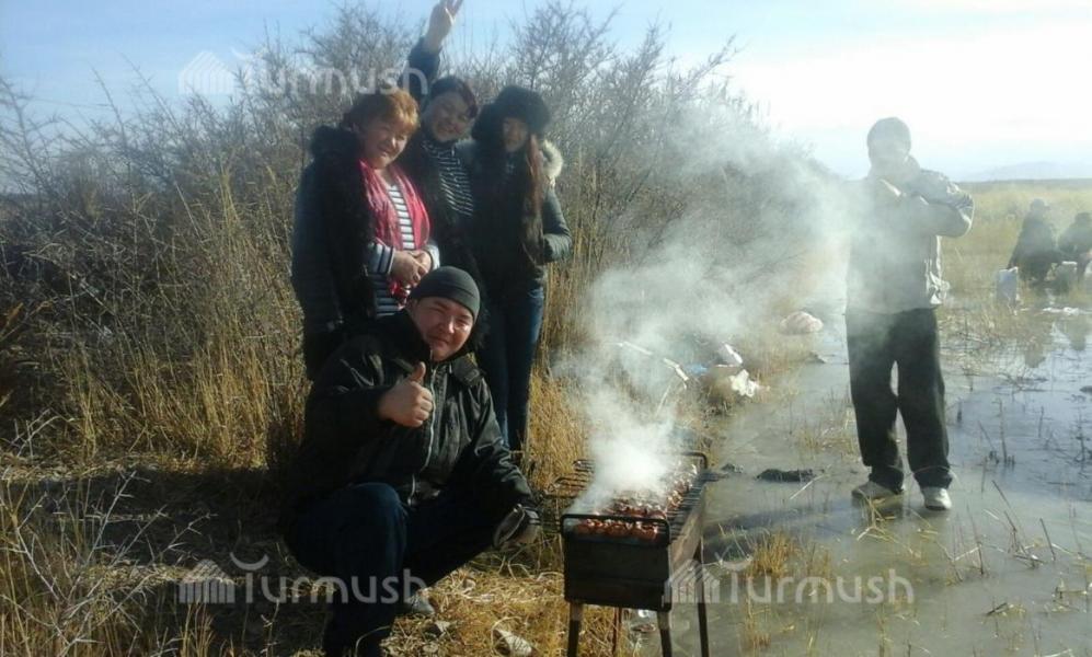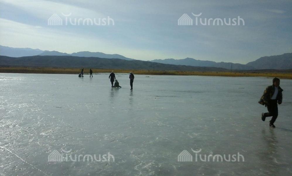 Балыкчы шаарынын четиндеги муз аянтчасына үйлөнүп жаткан жаш жубайлар келип, туулган күндөр өткөрүлүүдө (фото)