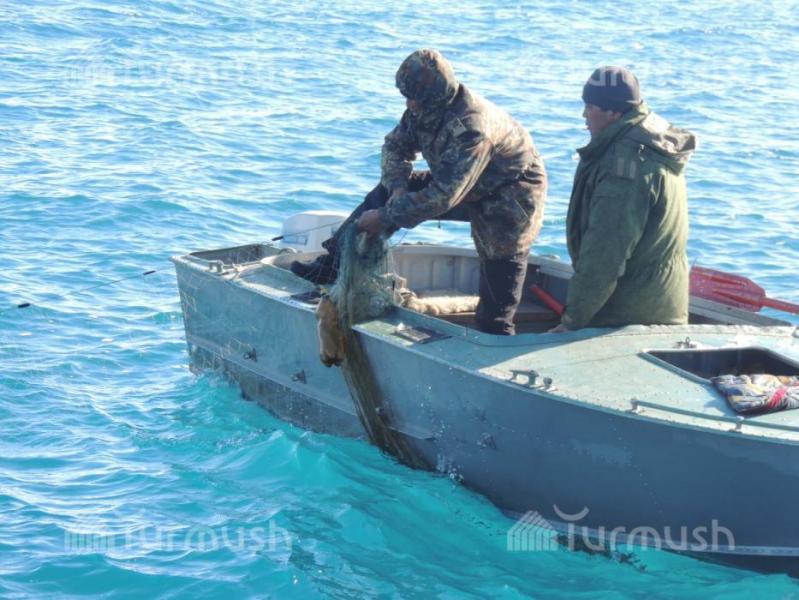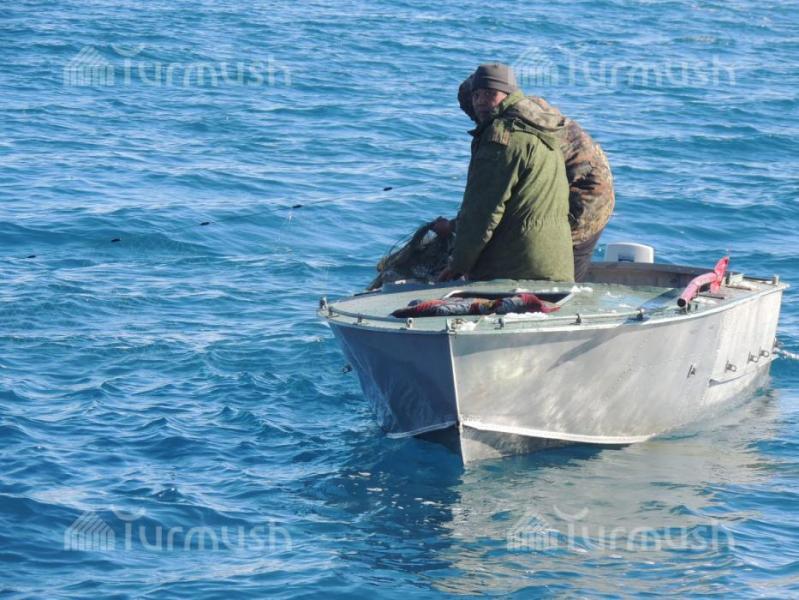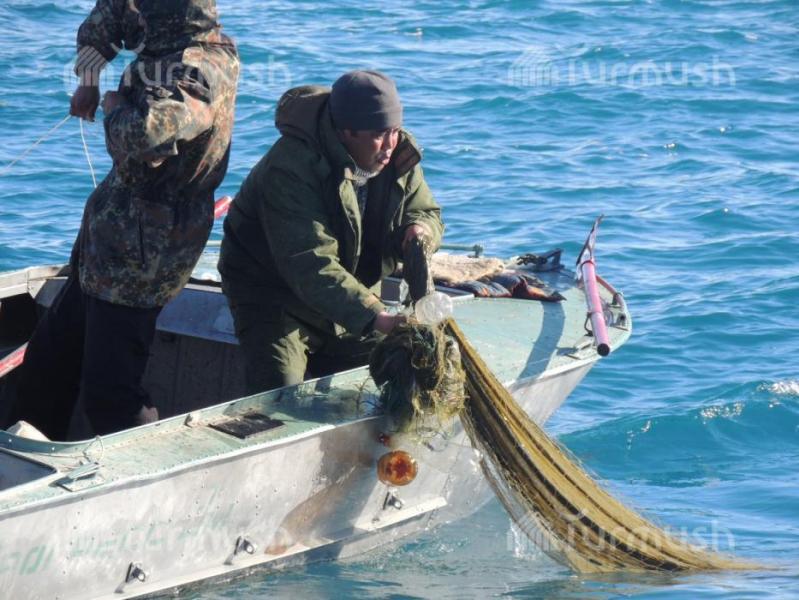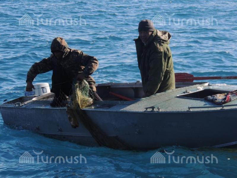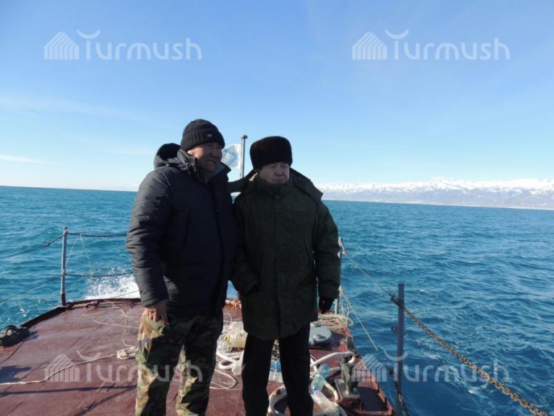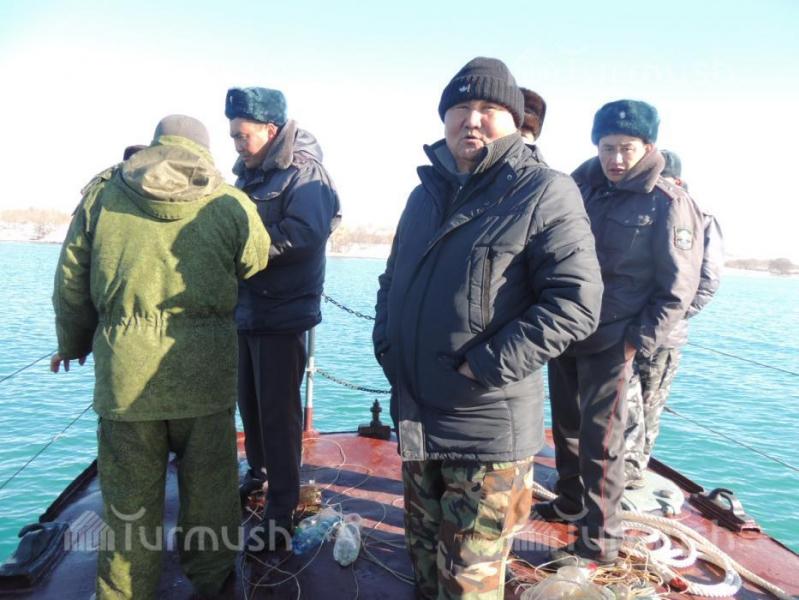 Жети-Өгүздүн айыл аймак башчылары көл үстүндө браконьерлерге каршы рейд уюштуруп, 1,2 чакырым тор жок кылынды (фото)
