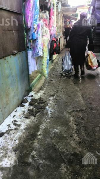 Караколдун тургундары «Ак-Тилек» базарынын жетекчилигинен базардагы тоңгон муздарды тазалоону суранышат (фото)