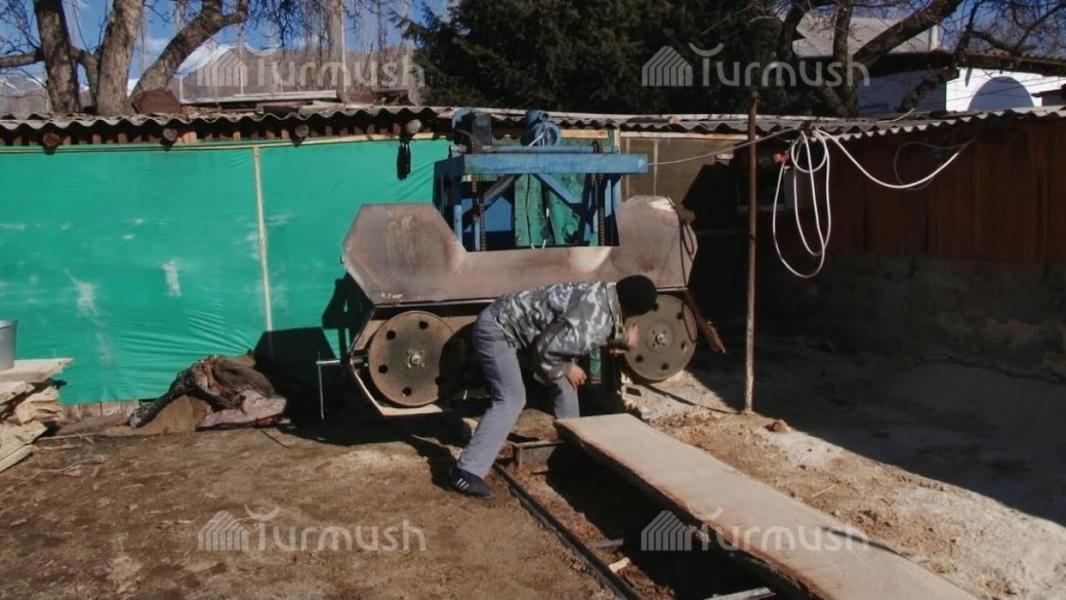 Айыл турмушу: Таластын 82 жаштагы тургуну Б.Осокеевдин үй-бүлөсү устачылык менен алектенип, жыгач тилүүчү цех иштетүүдө (фото)