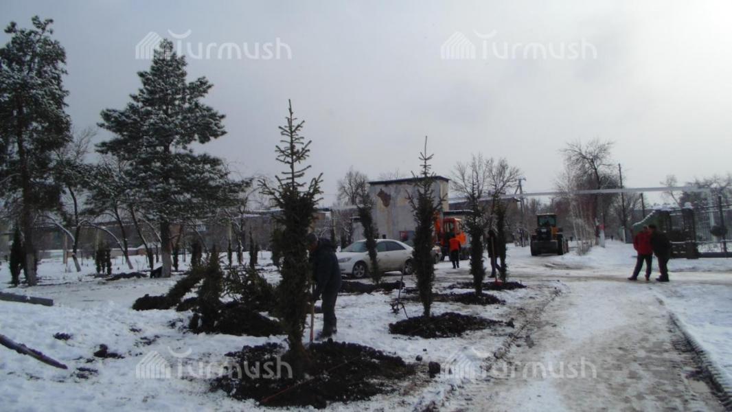 Кара-Балта шаарынын бюджетинен ийне жалбырактуу бактын 400 түп көчөтү алынып, отургузуу иштери башталды (фото)