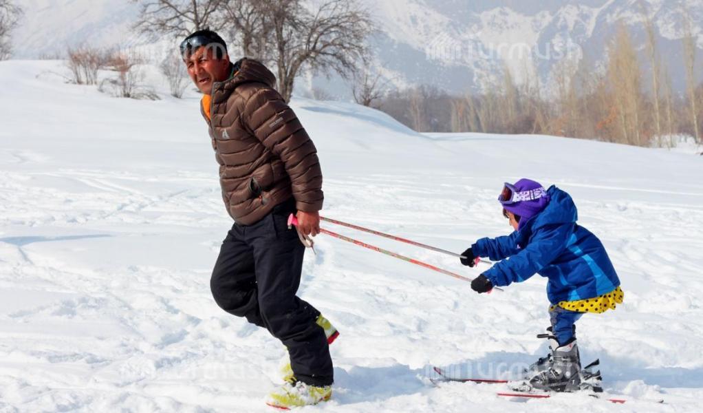 Америкалык туристтер Жалал-Абаддагы 20 окуучуга лыжа тебүүнү үйрөтүп жатышат (фото)