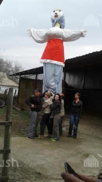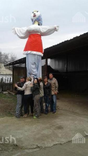 Масленица жумалыгынын соңунда өрттөө үчүн кара-балталыктар 4 метрлик куурчак жасады (фото)