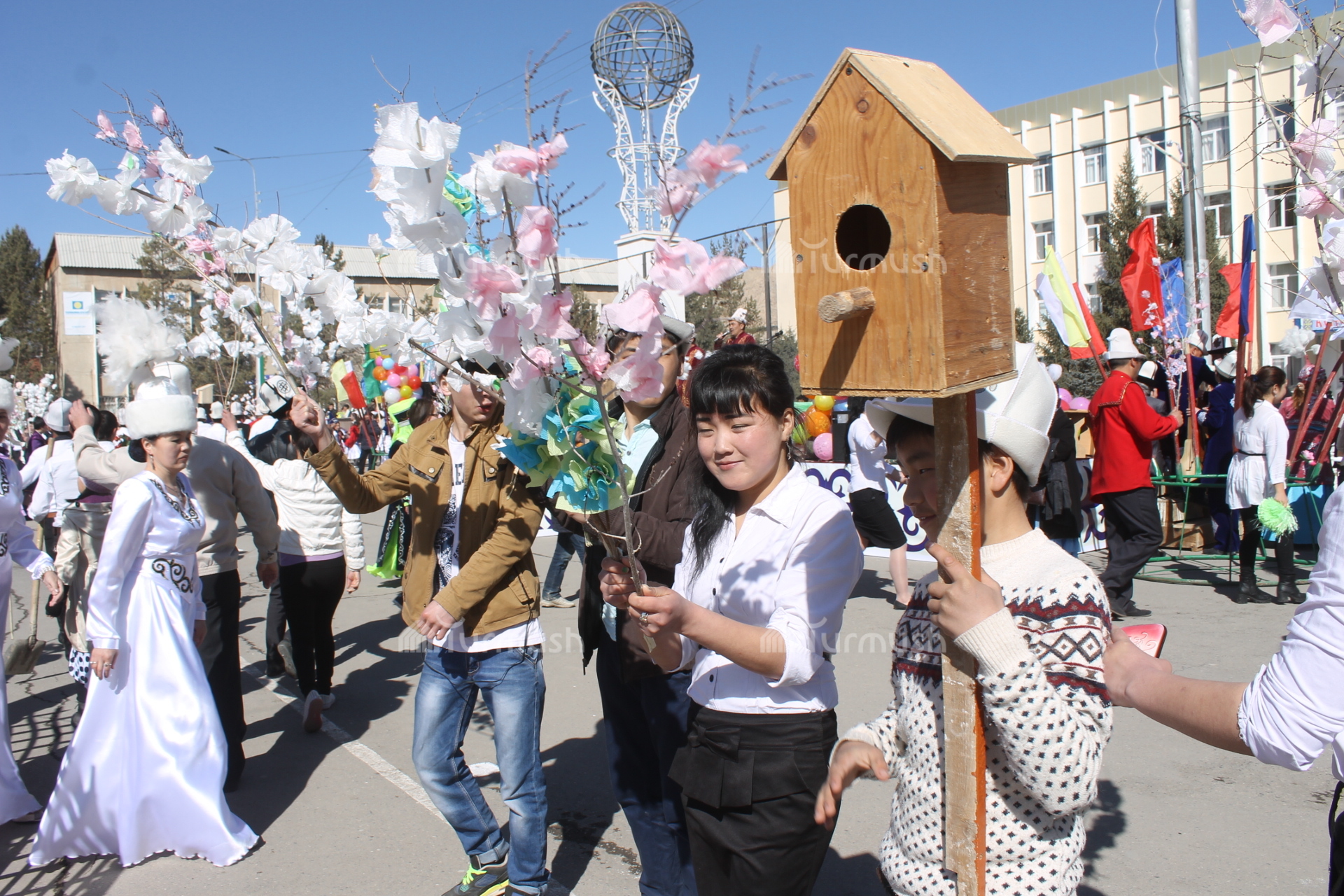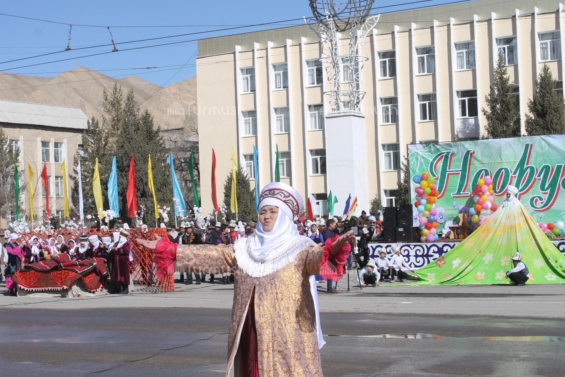 Нарын шаарынын борбордук аянтында белгиленген Нооруз майрамына 2000дей тургун топтолду (фото, видео)
