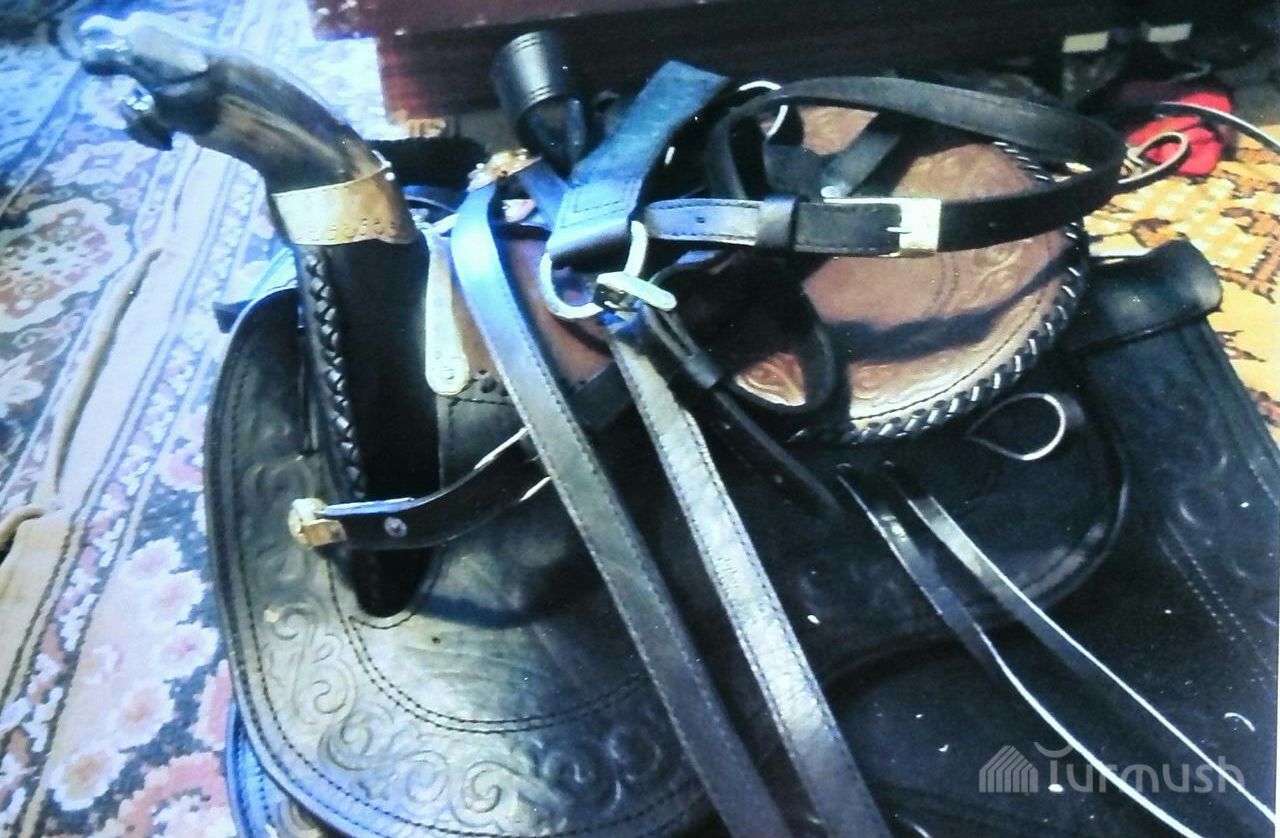 Айыл турмушу: Караколдук А.Сурабаев кайыш, мүйүз жана күмүш менен кооздогон ээрлерди 30 миң сомдон жогору баалайт (фото)