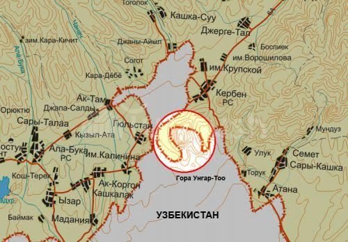 Үңкүр-Тоонун тарыхы: 2006-жылы Ташкентте К.Бакиев Үңкүр-Тоону «Өзбекстандын аймагында жайгашкан» деп тааныган (карта)