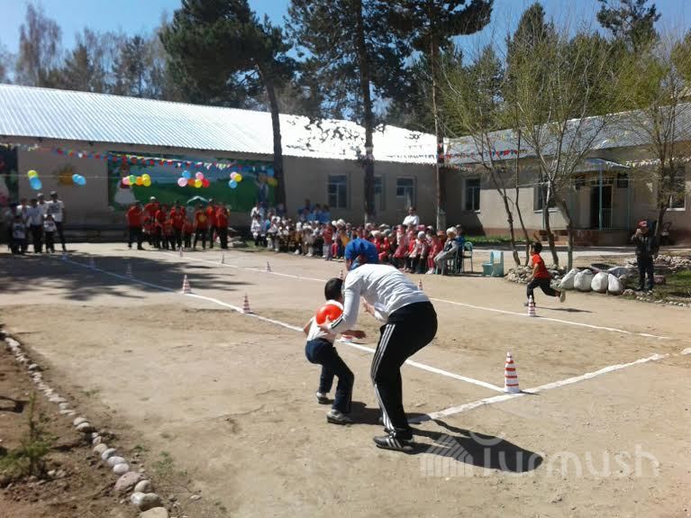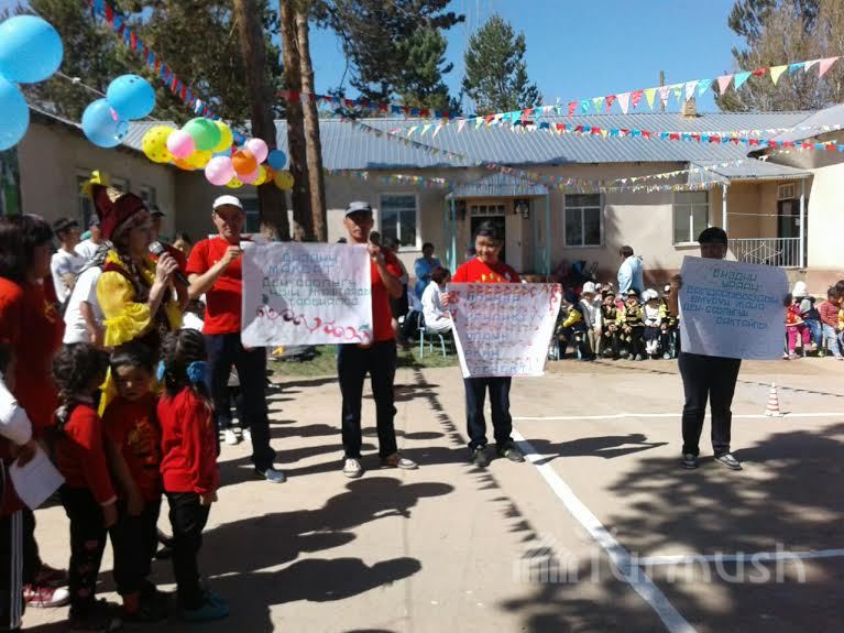 Жети-Өгүздөгү бала бакчанын тарбиячылары ата-энелери менен спорттук мелдешке түштү (фото)