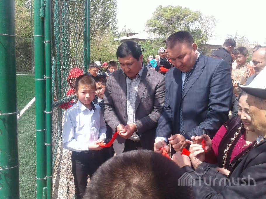 Ала-Бука айылында 2,4 млн сомго курулган кичи футболдук аянтча пайдаланууга берилди (фото)