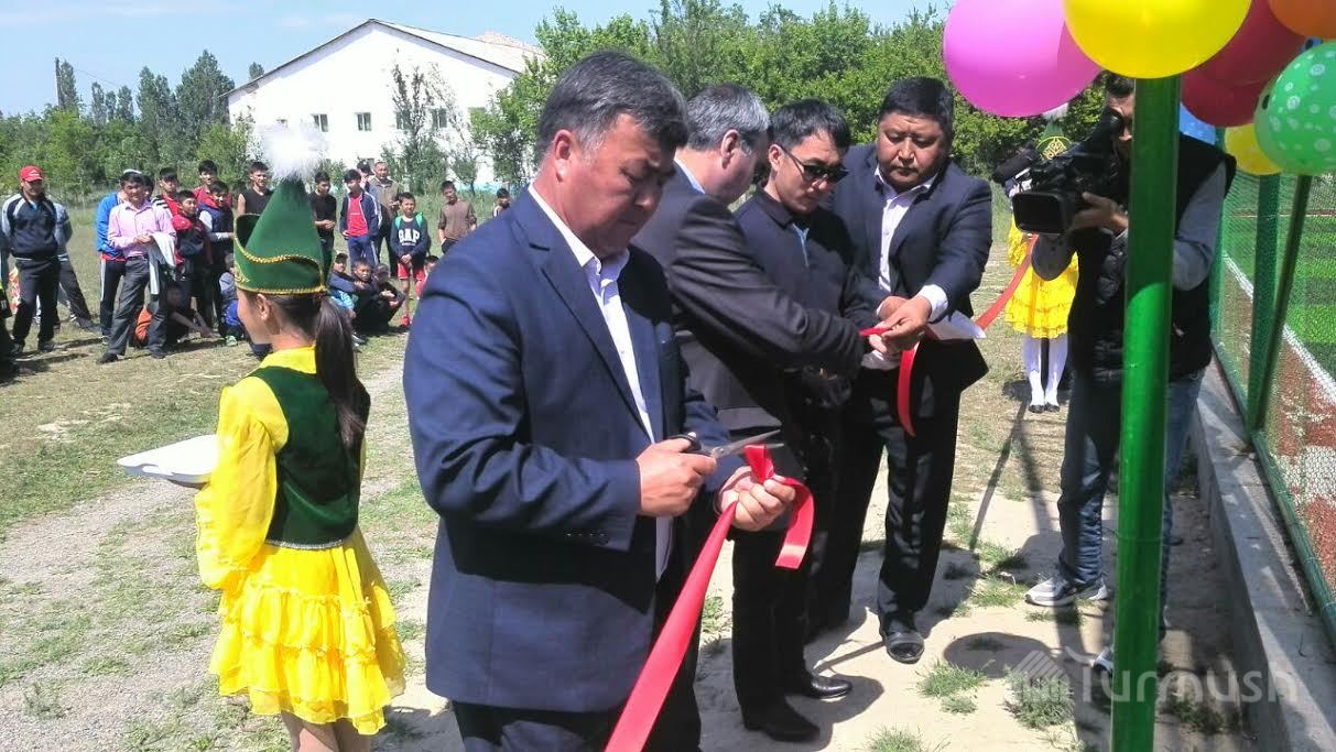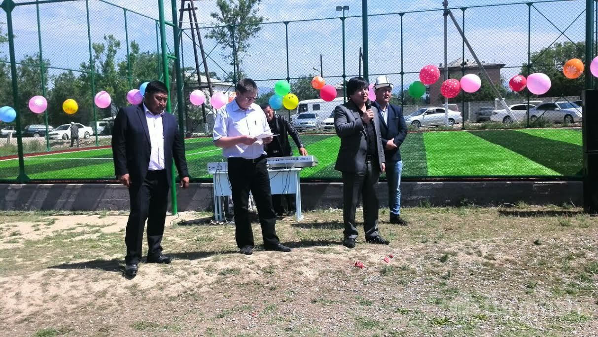 Манастын Кызыл-Жылдыз айылында 3,5 млн сомго футбол аянтчасы курулду (фото)