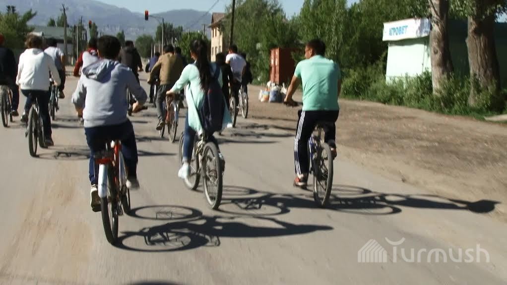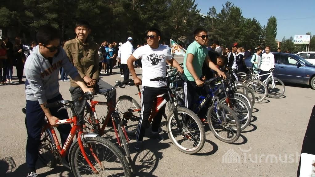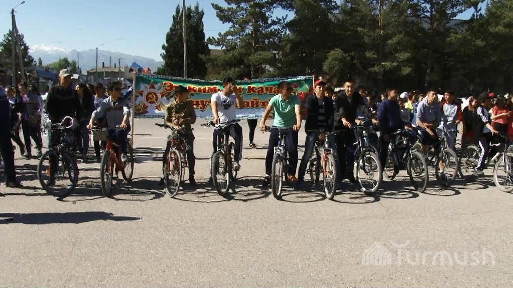 Ардагерлерге таазим кылган таластык студенттер «Эч ким, эч нерсе, унутулбайт!» деген ураан менен веложарышка чыкты (фото)