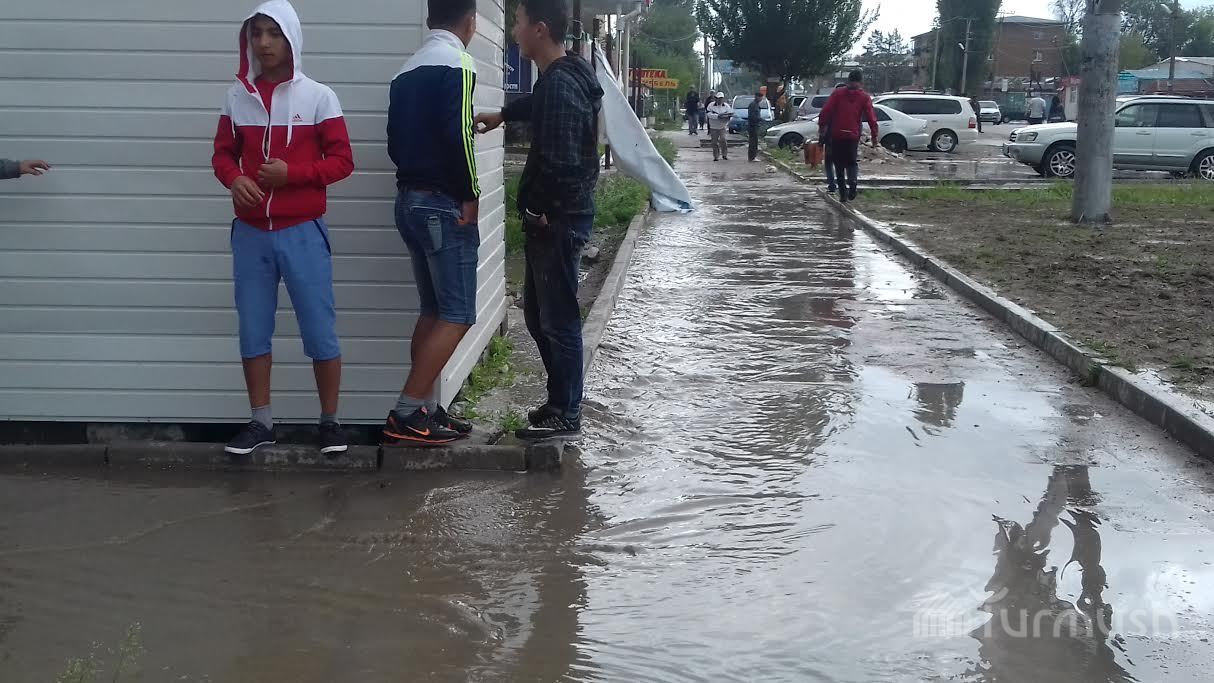 Талас шаарында жааган мөндүр айыл чарба өсүмдүктөрүнө зыян келтирди (фото)