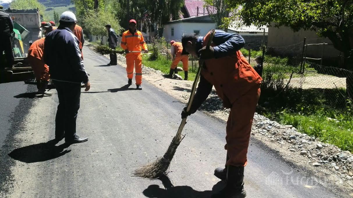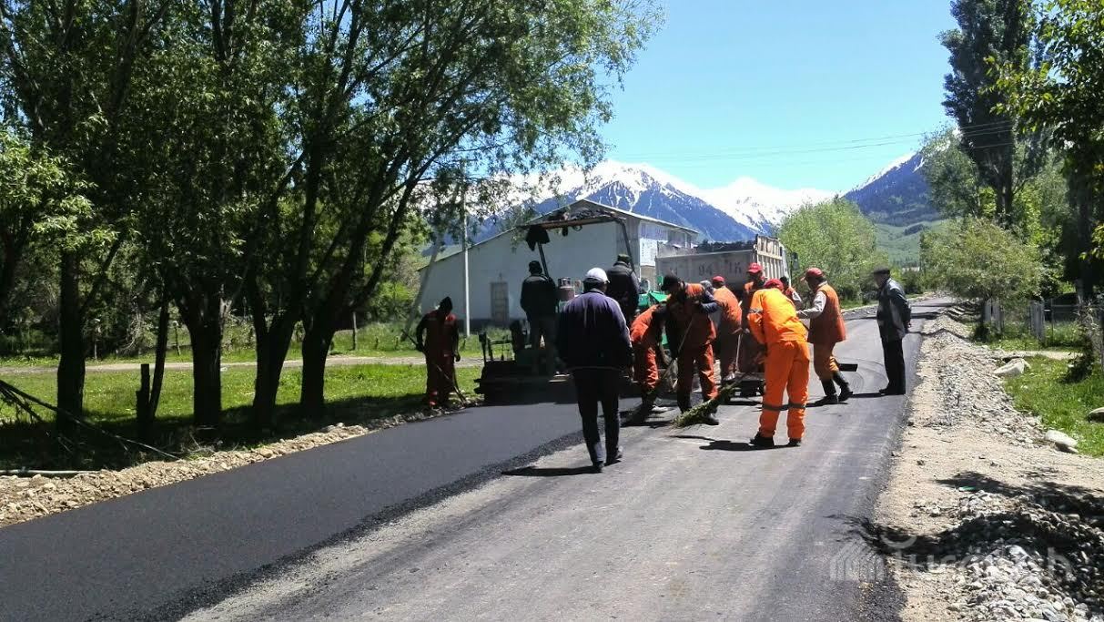 Ак-Суунун Нововознесенка айылында 2 чакырым жолго асфальт төшөлүүдө (фото)