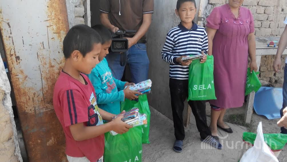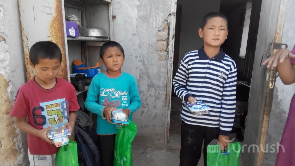 Оштогу аз камсыз үй-бүлөлөрдүн балдарына азык-түлүк жана кийимдер берилди (фото)
