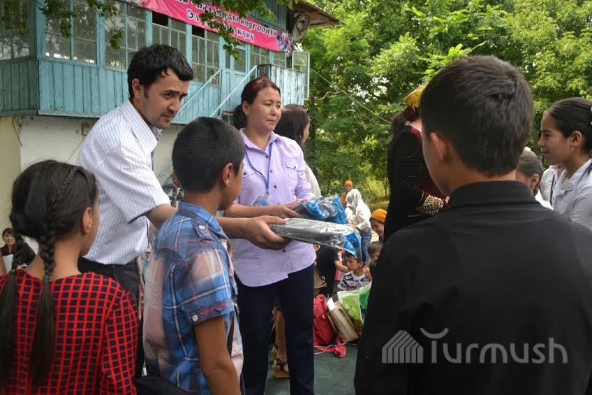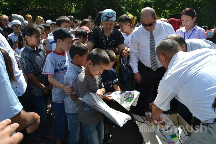Өзгөндөгү жакыр үй-бүлөлөрдүн балдары белектерге ээ болушту (фото)