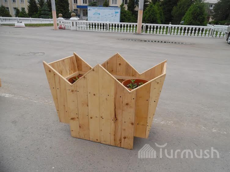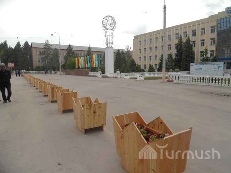 Өкмөттүн Нарын облусундагы өкүлчүлүгүнүн имараты 76 миң сомдук гүл челектер менен кооздолду (фото)