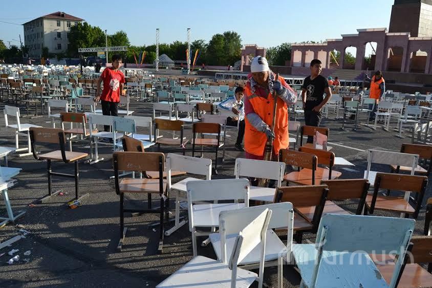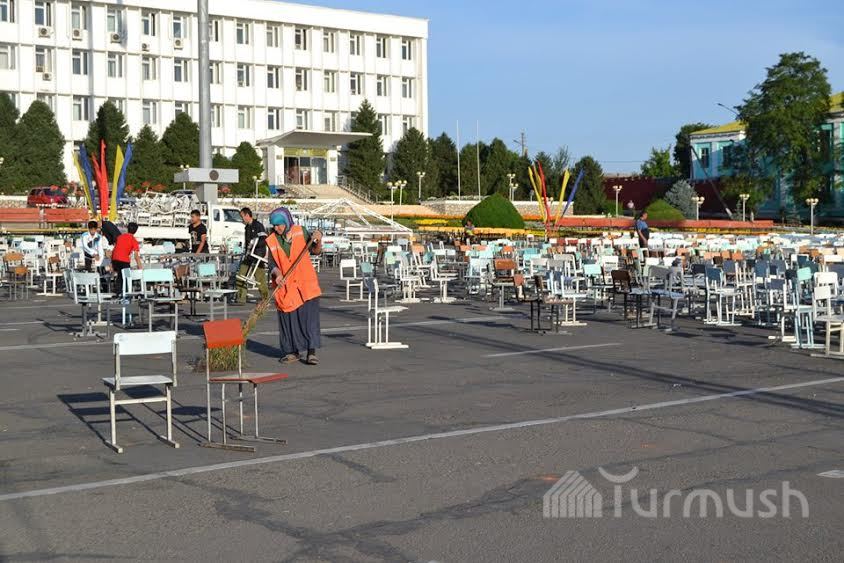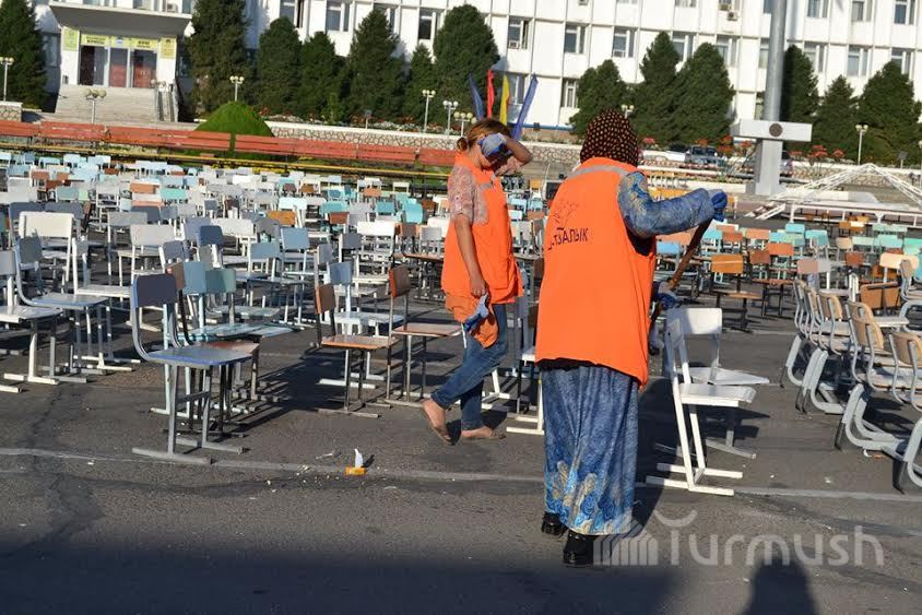Ош шаарынын борбордук аянты концерттен кийинки таштандылардан тазаланды (фото)