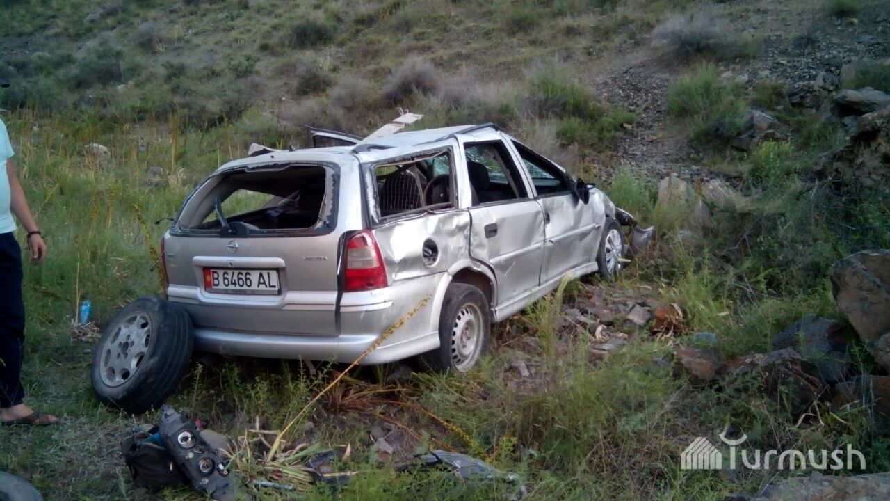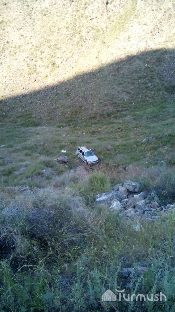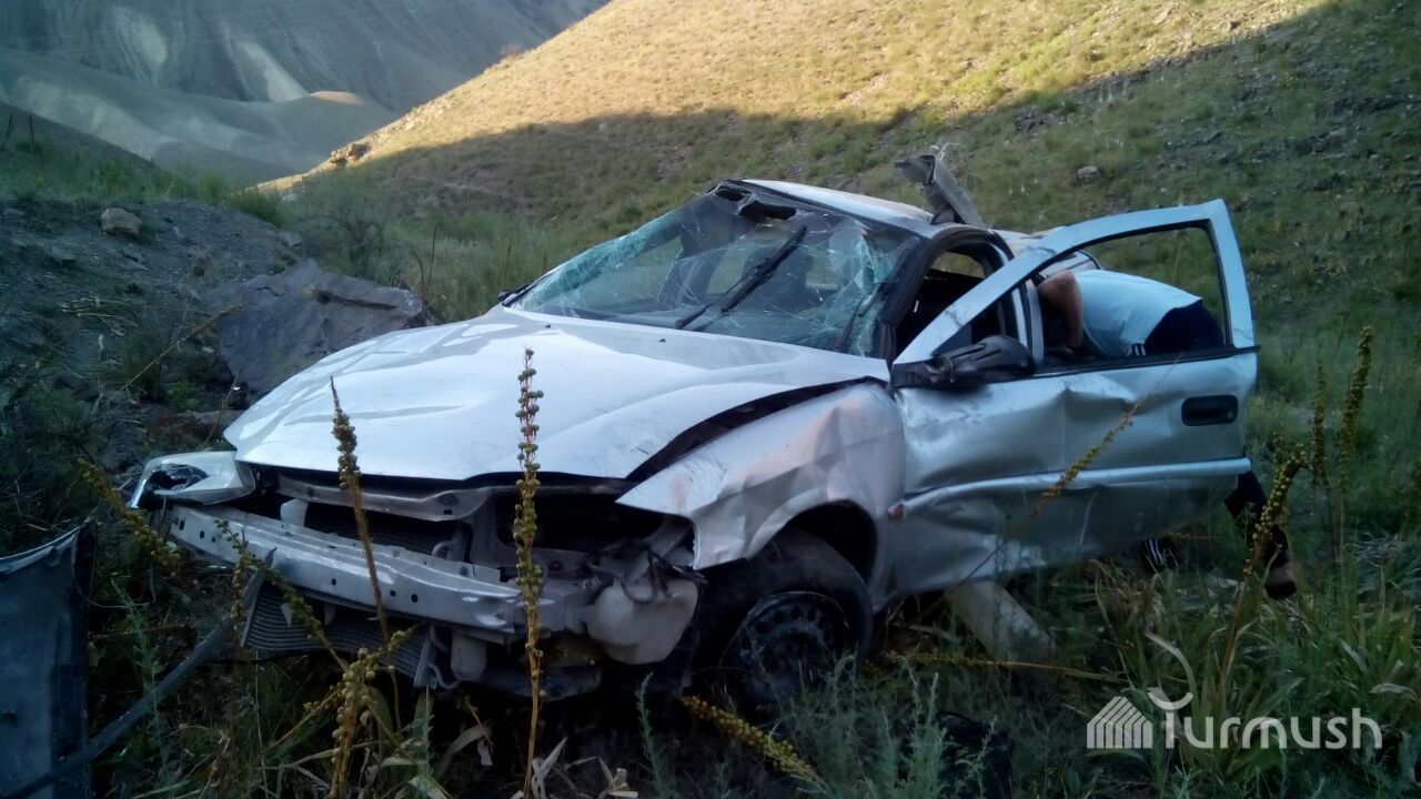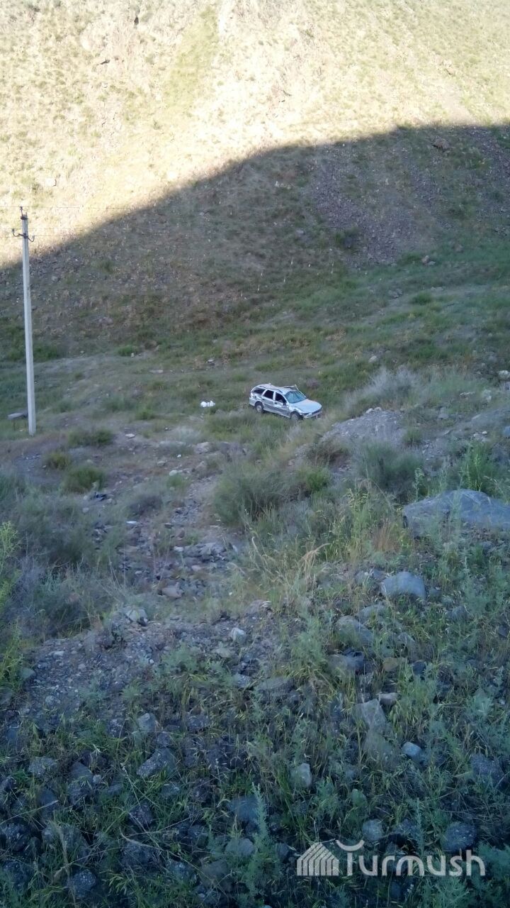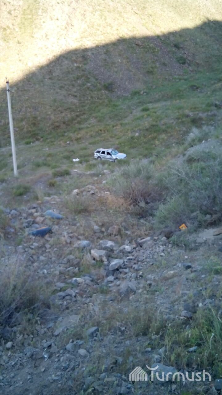 Кара-Көлдө башкаруусун жоготуп, сайга кулаган унаанын сүрөтү