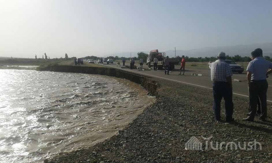 Чүй суусунун деңгээли көтөрүлүп, унаа жолго коркунуч жаратууда (фото)