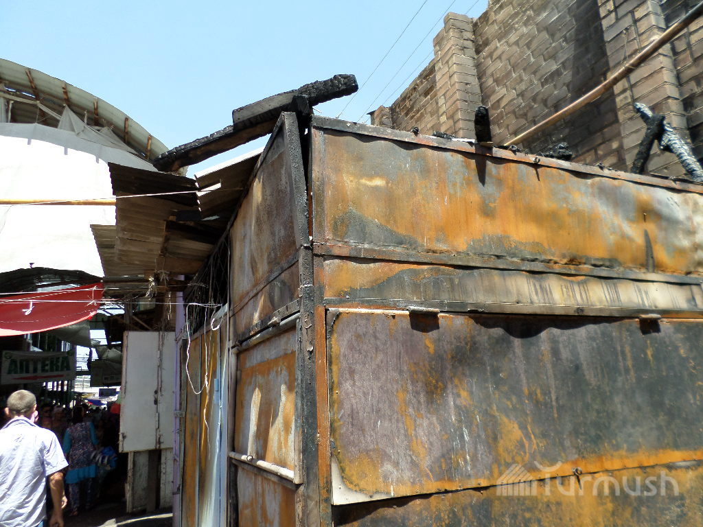 Кызыл-Кыядагы «Айбек» базарында азык-түлүк саткан дүкөн өрттөндү (фото)