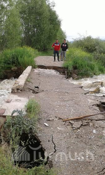 Ак-Булак жана Ак-Булуң айылдарын байланыштырып турган көпүрөнү суу алып кетти (фото)