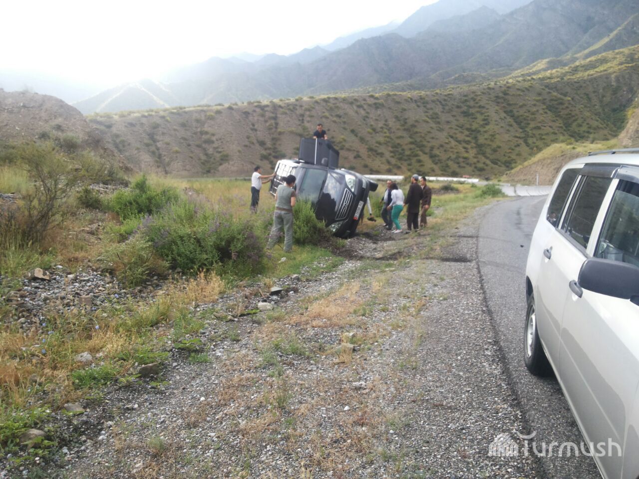 Т.Сарпашевдин жол тандабасы оодарылган Бишкек—Ош жолунун тилкесинде экинчи «Лексус» башкаруусун жоготту (фото)