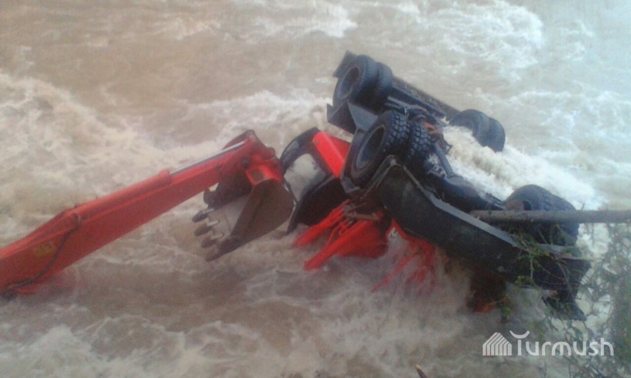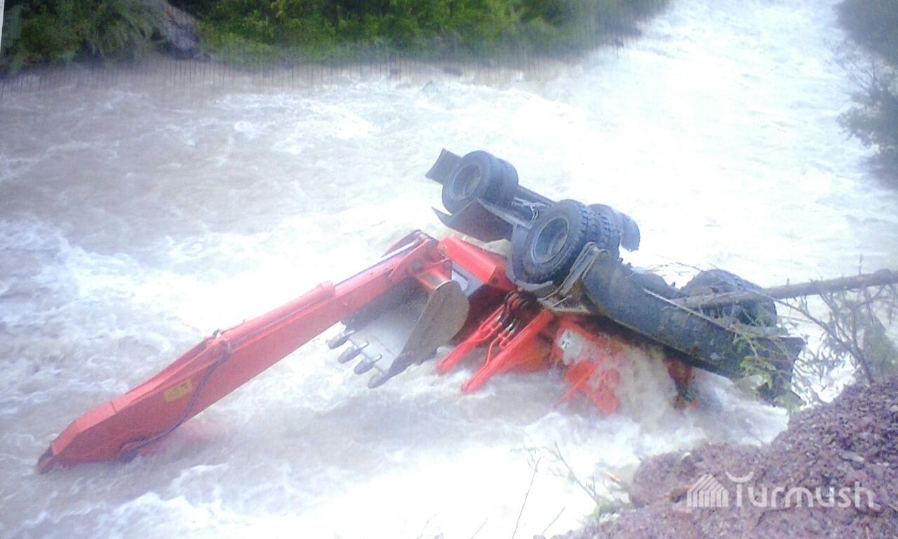 Жети-Өгүздө иштеп жаткан экскаватор сууга кулап түштү (фото)