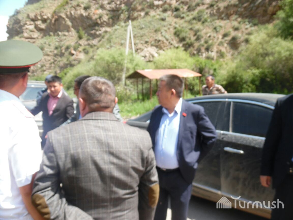 Төрага Ч.Турсунбеков Нарындын селден жабыркаган жолдорун көрүү үчүн «Кадиллак» менен келди (фото)
