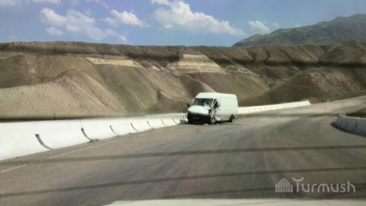 Бишкек—Ош жолунда бара жаткан «Мерседес-Гигант» унаасы тосмону сүздү (фото)