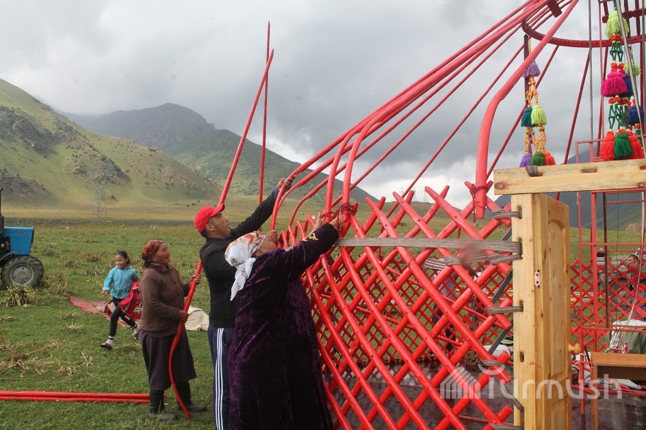 Айыл турмушу: 5 миң долларлык боз үйлөрдү жасалгалаган Т.Турусбекова алгачкылардан болуп кызынын себине боз үй кошуп берди (фото)