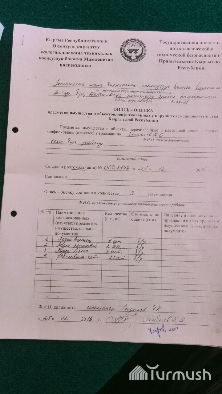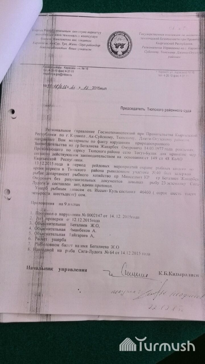 Балык чарба департаментинин кызматкерин Мамэкотехинспекциянын кызматкерлери сабаган эмес, - улук инспектор Т.Садыров (фото)