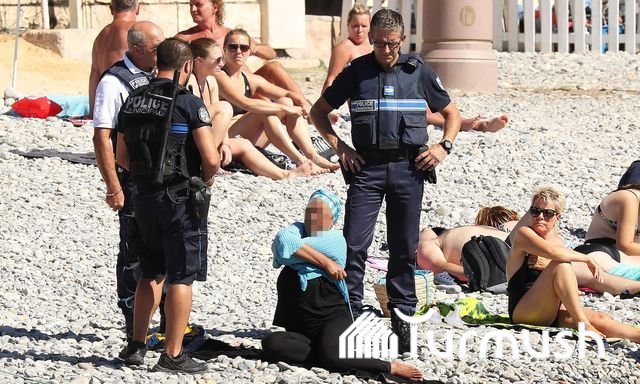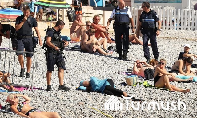Францияда буркини кийген аялды чечиндиришти (фото)
